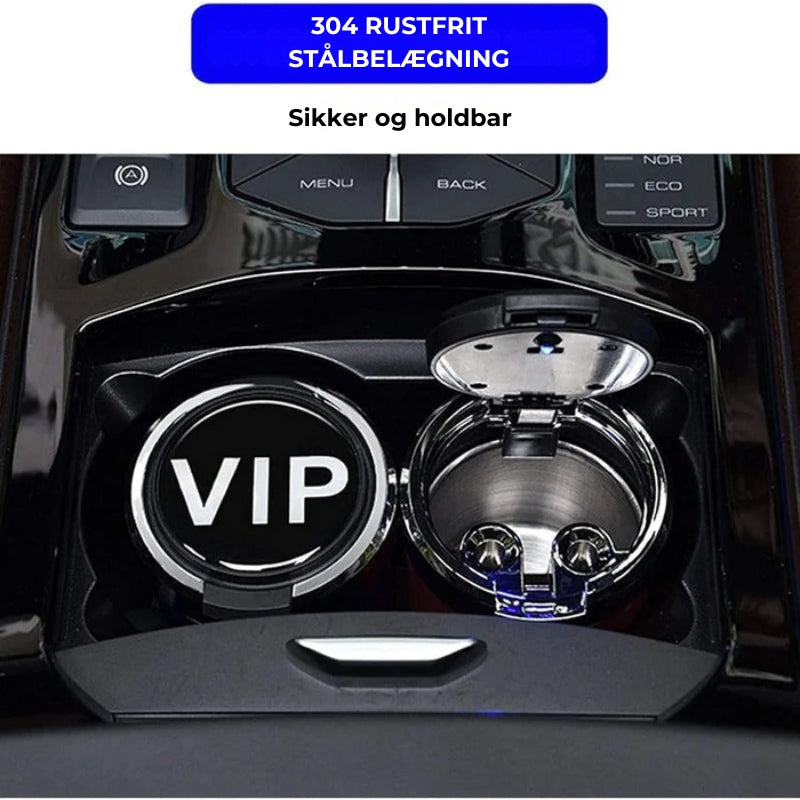 Et enkelt tryk, og låget glider lydløst op. Den bløde blå LED-belysning gør det nemt at finde askebægeret – selv under køreture i mørke.