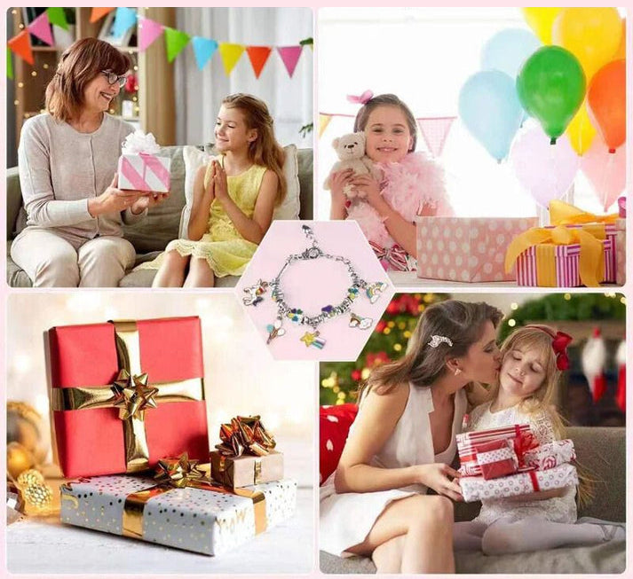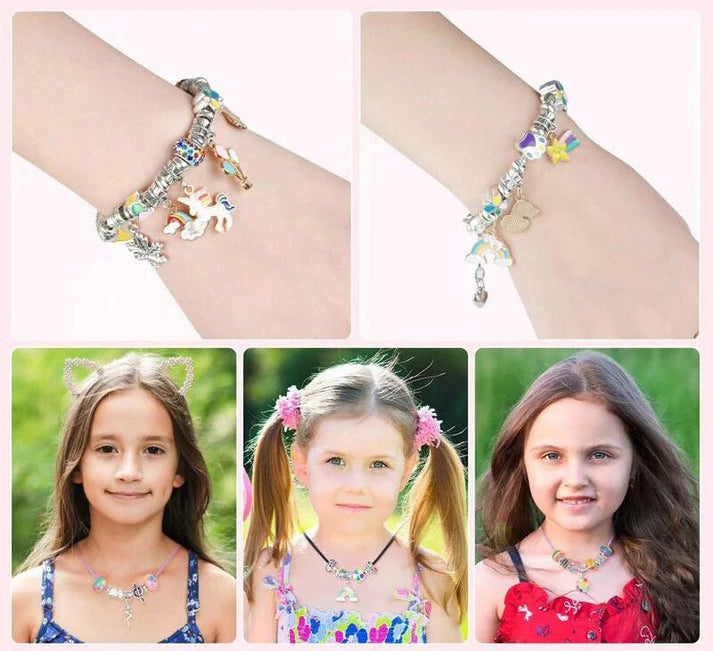 Halskæde- og armbåndssæt: med charmerende vedhæng som regnbuer, hjerter, engle, snefnug, vinger og kroner – alt sammen yndlingsmotiver hos piger.