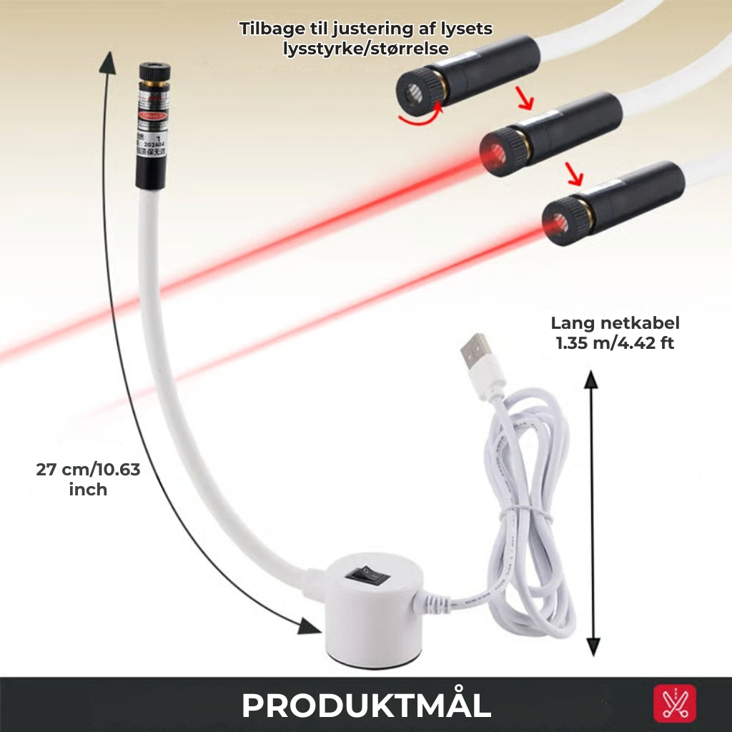 PASSER TIL ALLE SYMASKINER: Laserguiden har en magnet, så den nemt kan fastgøres og fjernes fra symaskiner, overlockmaskiner og broderimaskiner. Den fleksible arm gør det muligt at placere laseren præcis, hvor du har brug for den.
