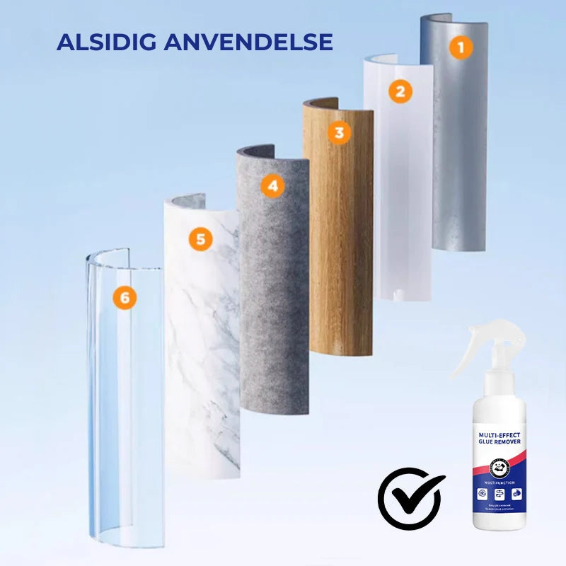 Limfjerningsspray er lavet til at fjerne limrester, men den passer ikke nødvendigvis til alle typer pletter eller overflader. Prøv altid først på et lille, skjult område, før du bruger den.