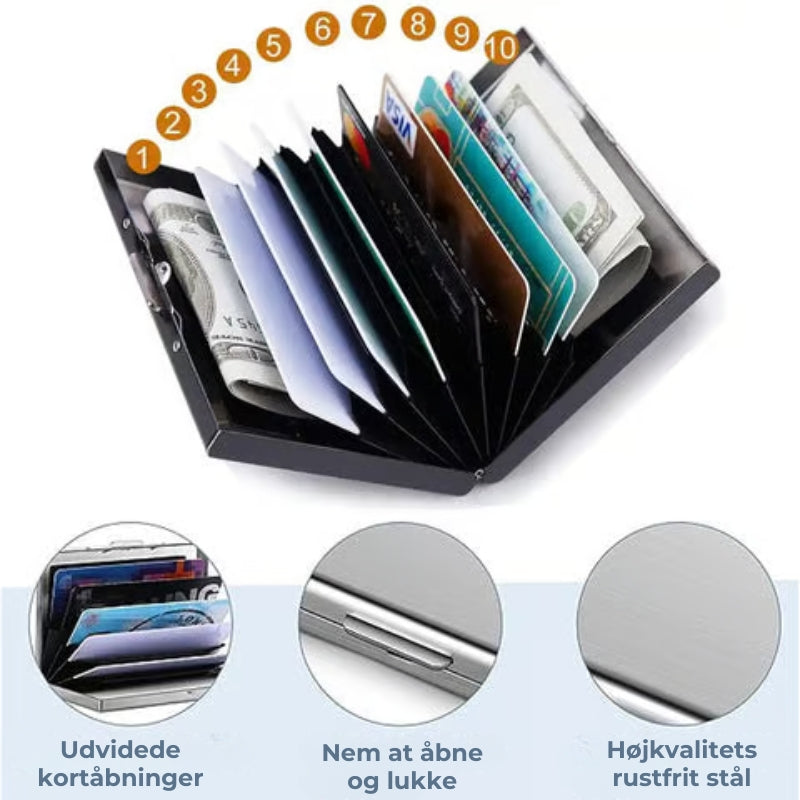 💵【MATERIALE】Denne kreditkortholder til erhvervsbrug er fremstillet af rustfrit stål, som er stærkere og mere holdbart end plast eller aluminium.